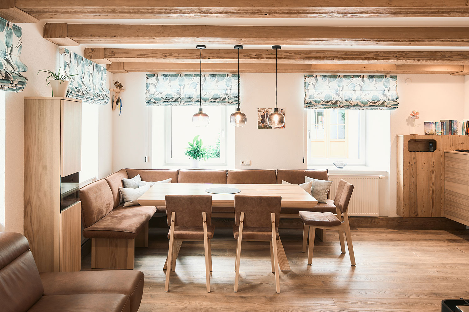 Wo früher Generationen zusammenkamen, lädt heute eine neu interpretierte Stube zum Verweilen ein. Das Bauernhaus in mittlerweile sechster Generation verbindet Geschichte mit zeitgemäßem Wohngefühl.