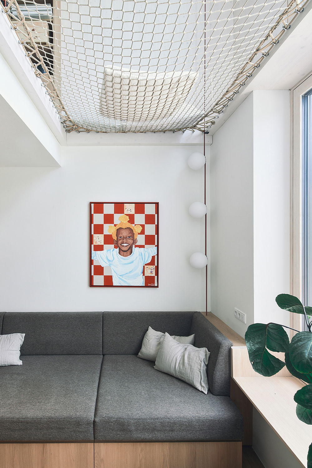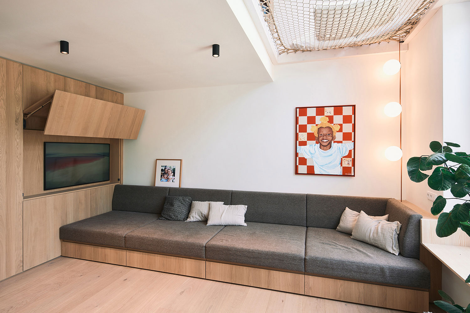Diese Dachgeschosswohnung wurde im Rahmen einer Gesamtsanierung modernisiert und erweitert. Eine neue Gaupe schafft mehr Wohnfläche und verbessert den Zugang zum Balkon. Ein integrierter, lässiger Homeoffice-Bereich nutzt den vorhandenen Raum optimal. Mutige Material- und Farbkombinationen sorgen – gemeinsam mit einem durchdachten Lichtkonzept – für eine lebendige und moderne Atmosphäre unter dem Dach. (Fotos: Sigrid Rauchdobler)