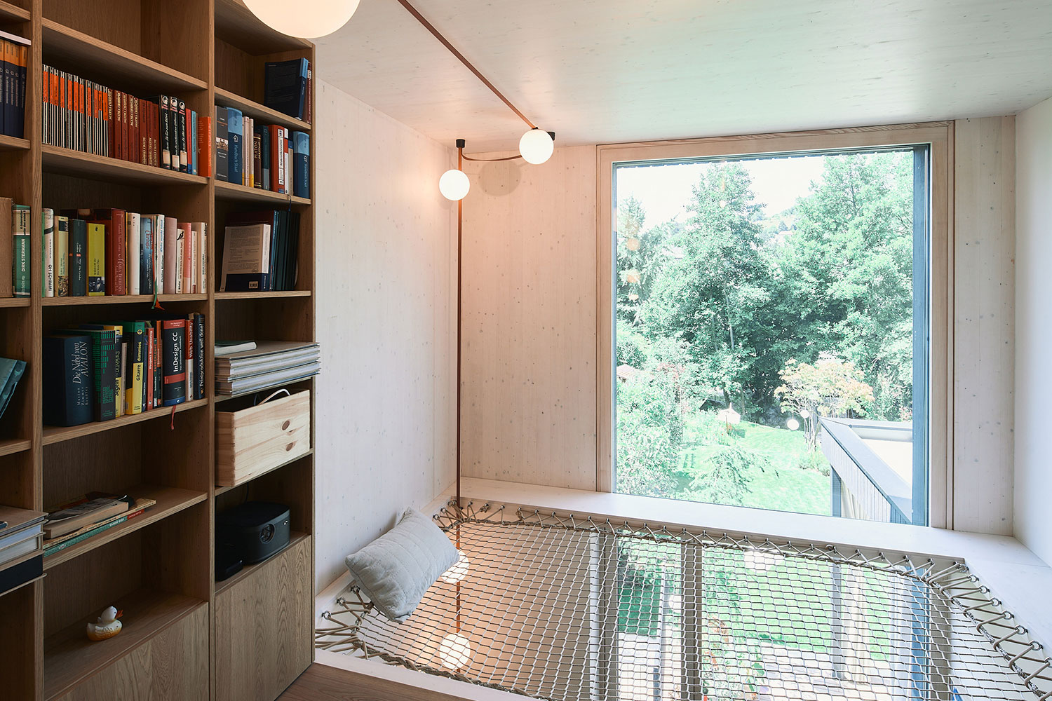 Im Zentrum der Planung stand das analoge Wohnen: Räume, die Begegnungen fördern, Gespräche entstehen lassen und Gemeinschaft spürbar machen. Massive Holzwände bringen trotz der Größe eine warme Natürlichkeit, während großzügige Glasflächen den Garten wie selbstverständlich ins Haus holen. (Fotos: Robert Maybach)